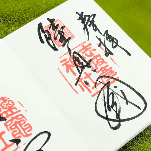 当神社の御朱印は、見開き両面を使用し、志波彦神社と鹽竈神社の御朱印を押印しております。